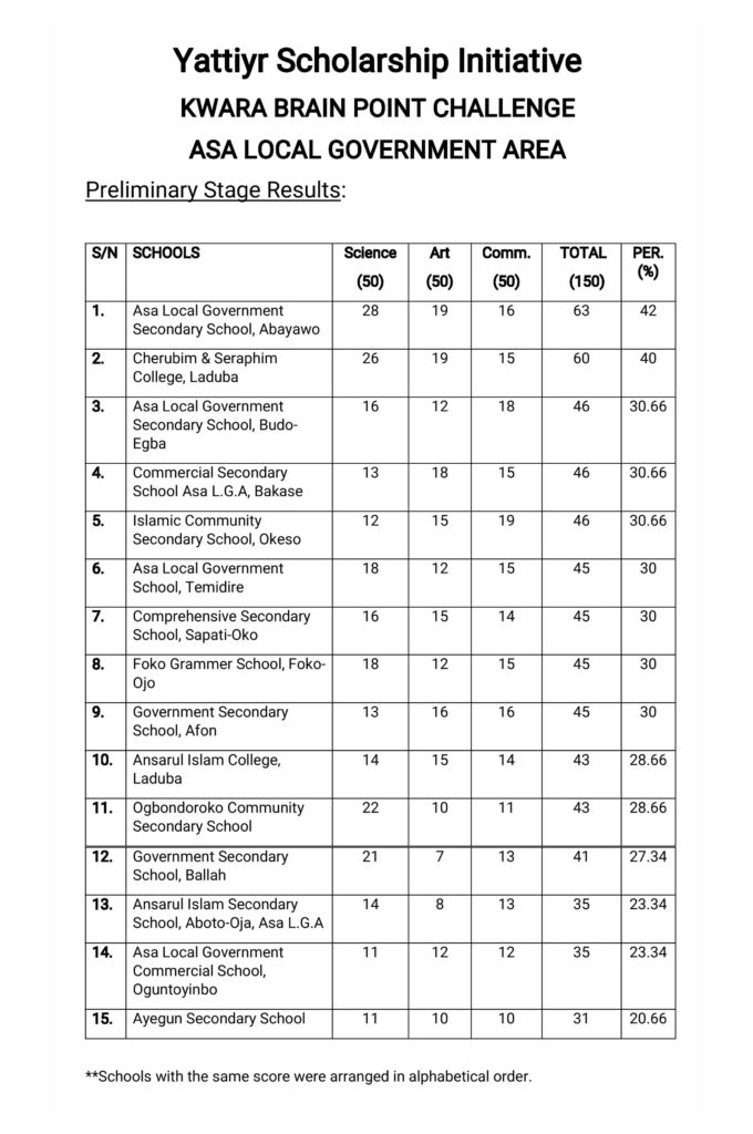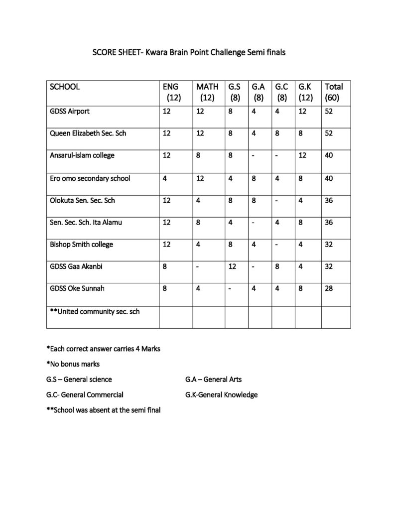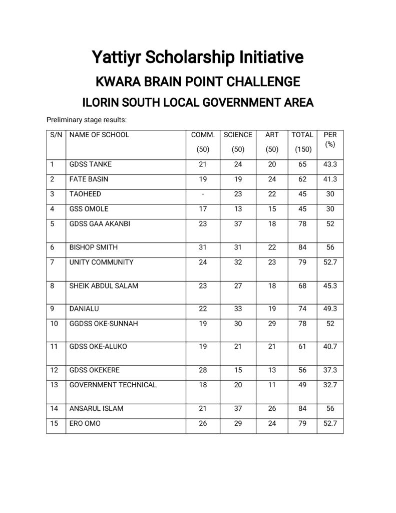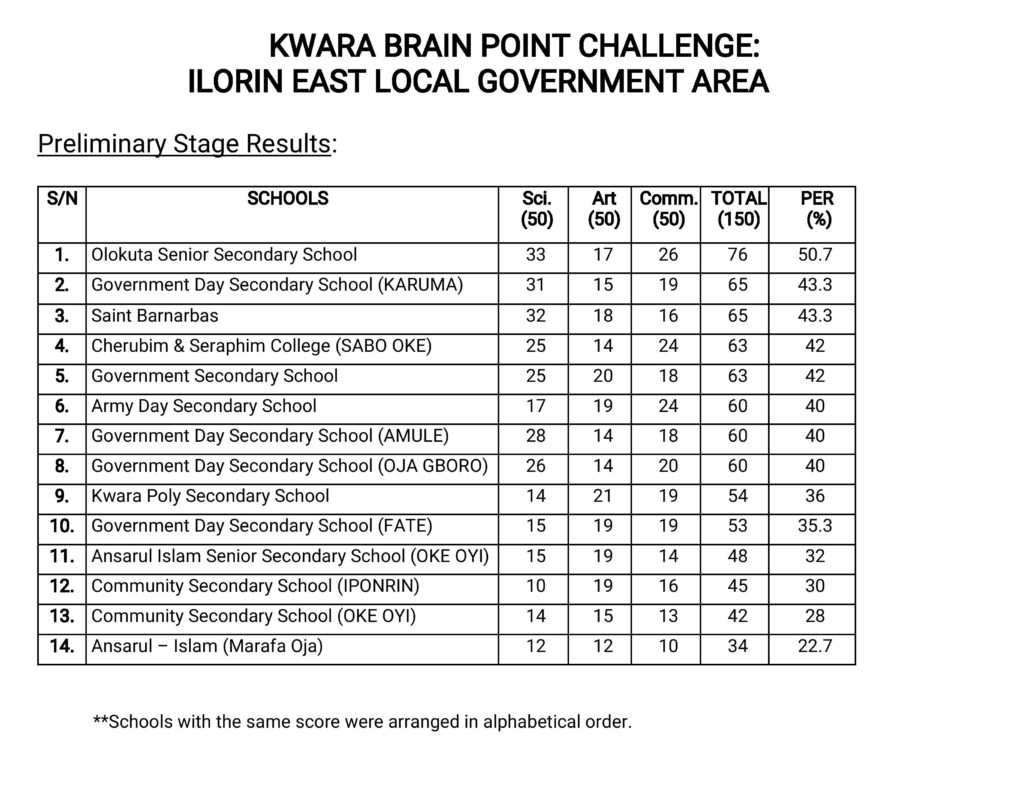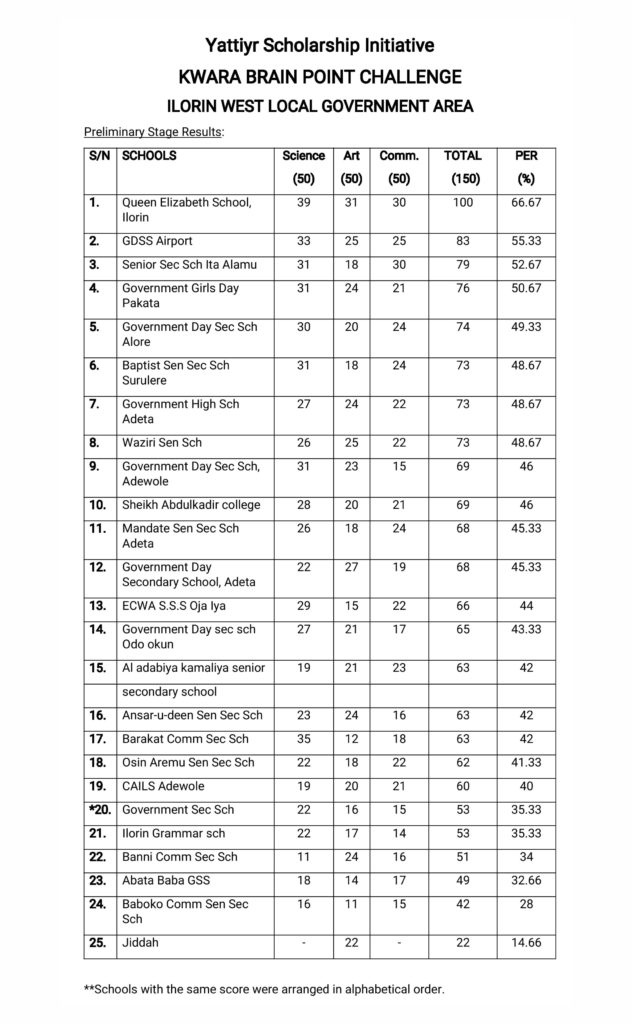 The grand finale is scheduled to hold on December 8th, 2018 at the Kwara TV Hall, Ilorin. Below are the results from the preliminary and semi final stages of the competition: