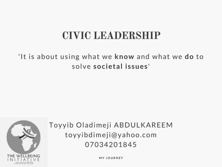 In a world where people largely mind their own businesses in the midst of violence, insurgency, health deficiency and all forms of unrest, civic engagement has been simply put to mean solving any of these issues that confront one’s environment.